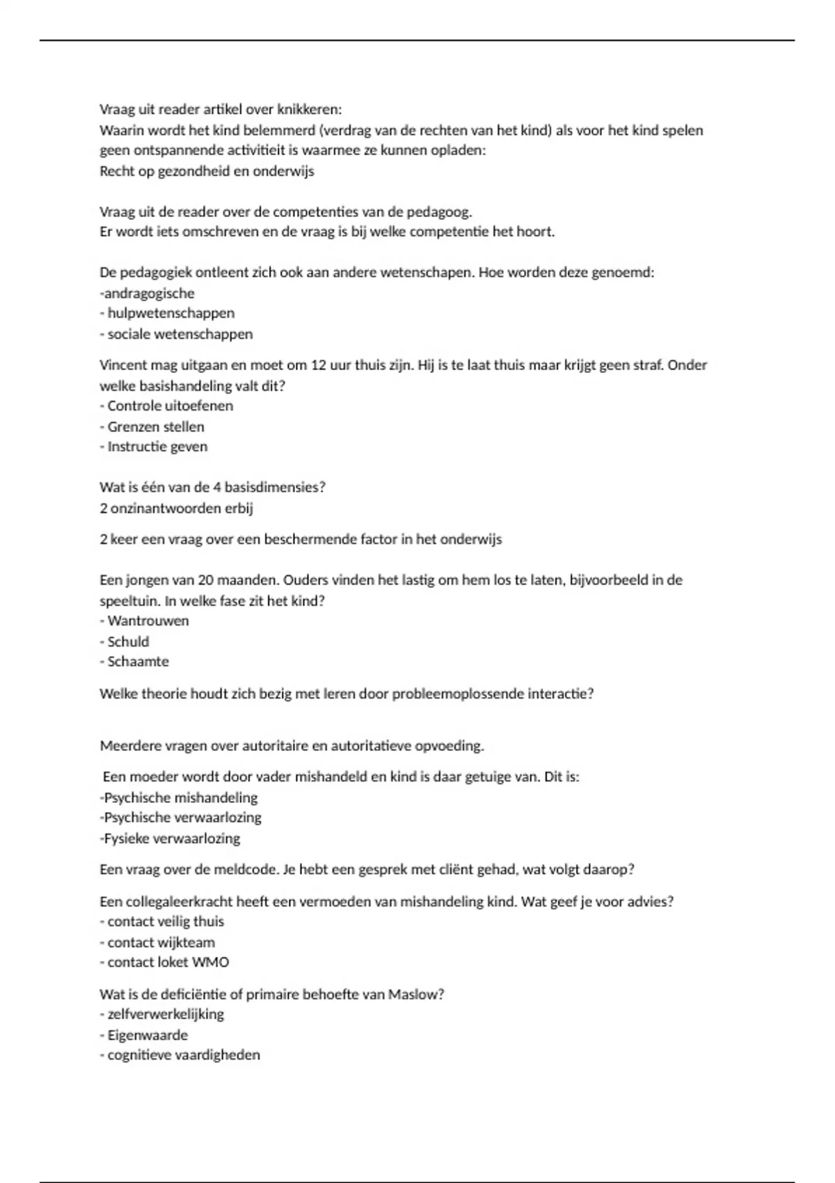 Toetsvragen tentamen kernbegrippen pedagogiek