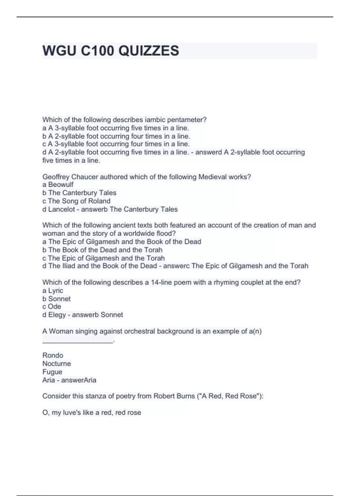 WGU C100 QUIZZES QUESTIONS AND ANSWERS GRADED A