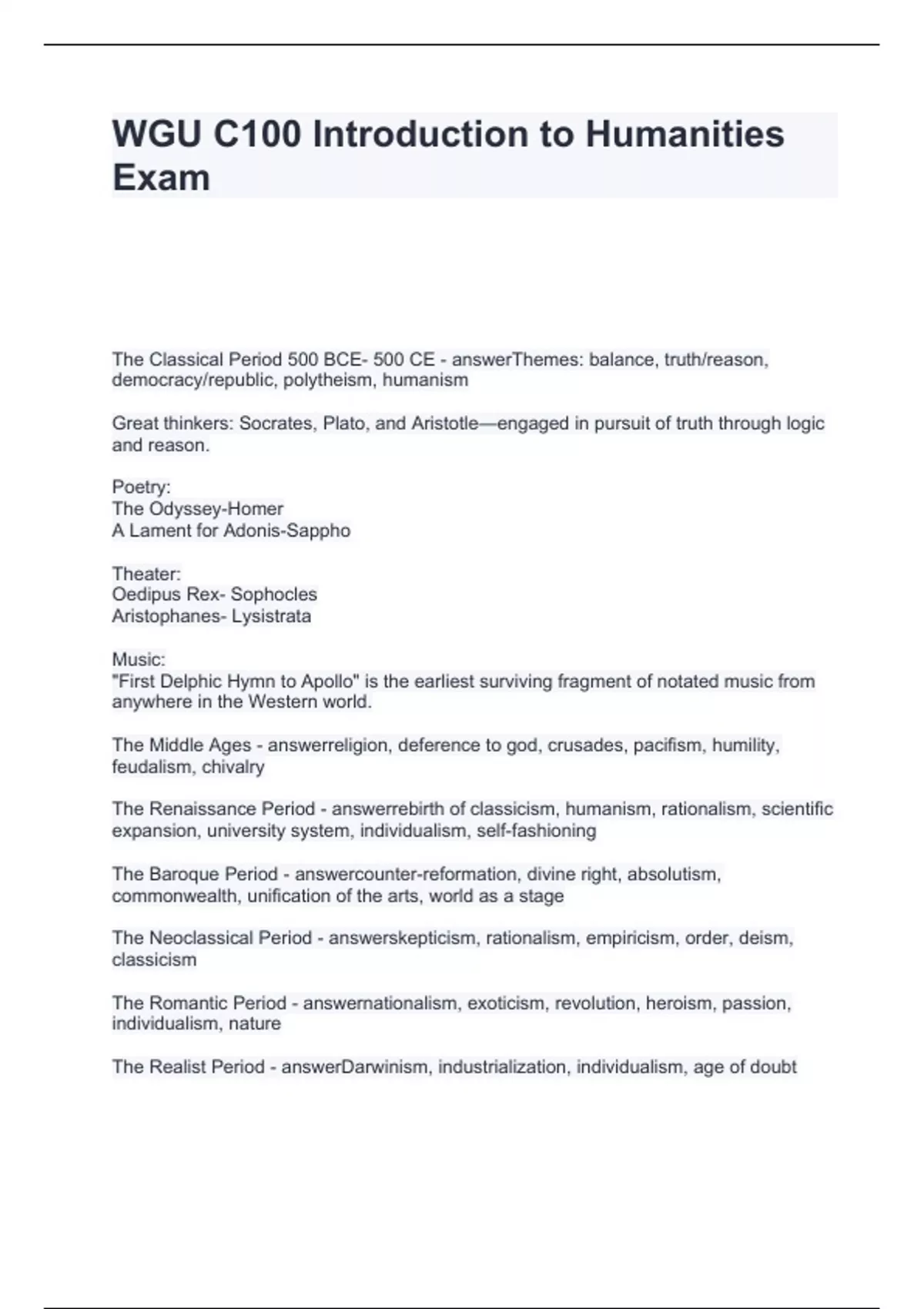 WGU C100 Introduction to Humanities Exam Questions and Answers 2024