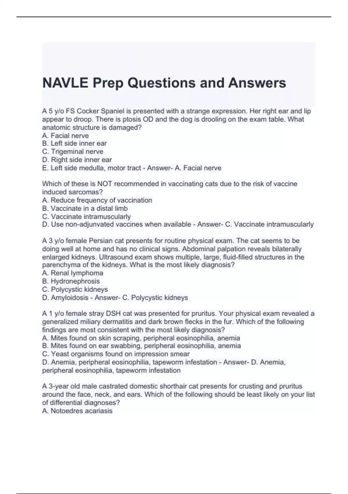 NAVLE Prep Questions and Answers