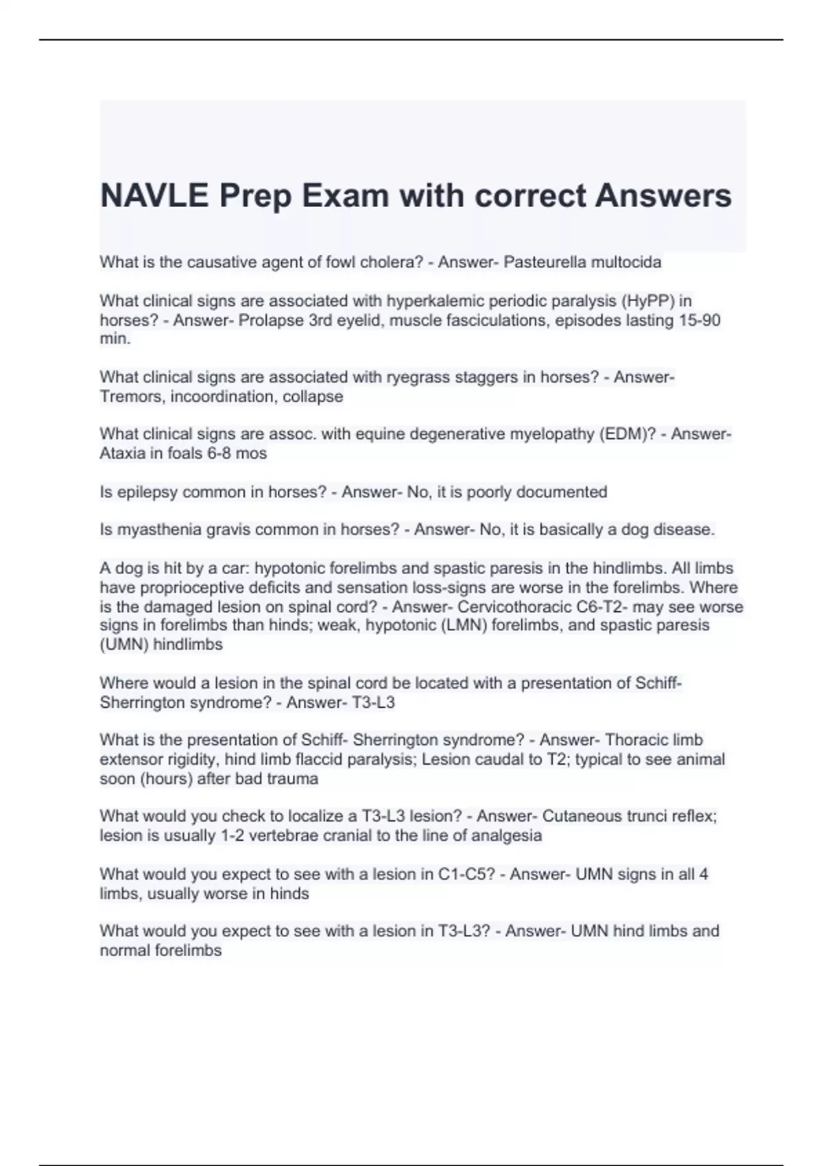 NAVLE Prep Exam with correct Answers