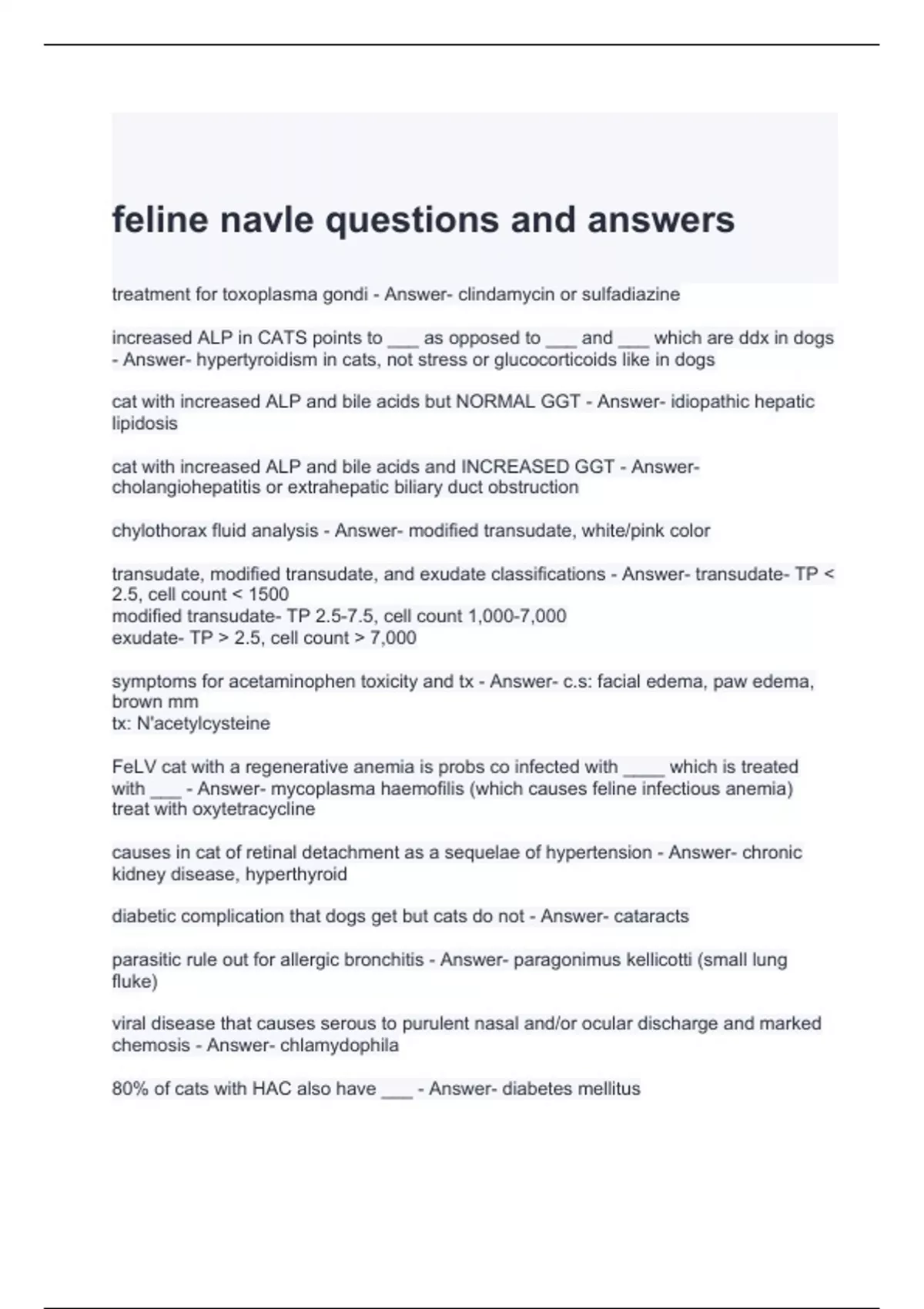 feline navle questions and answers- graded a