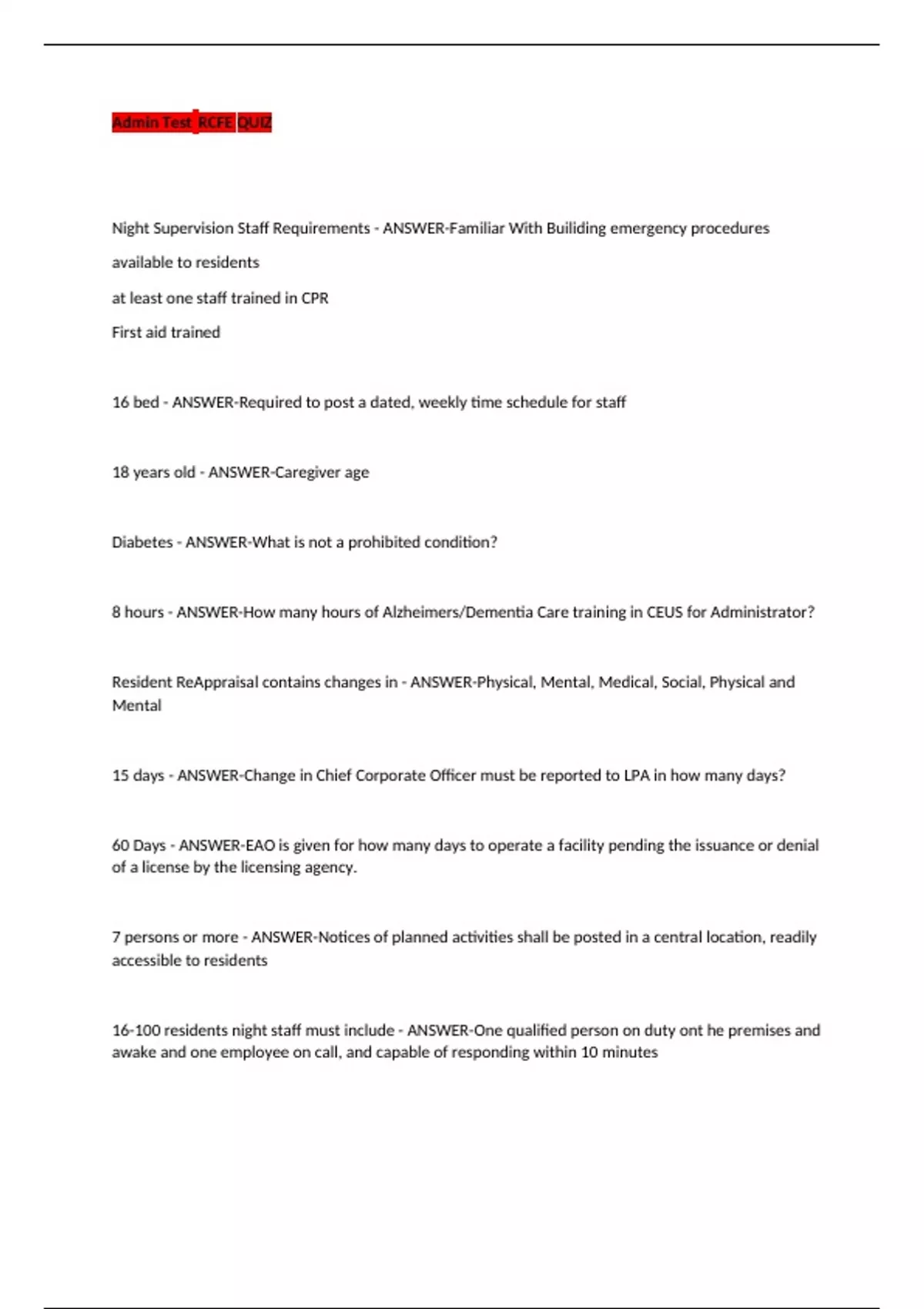 Admin Test RCFE QUIZAdmin Test RCFE QUIZ