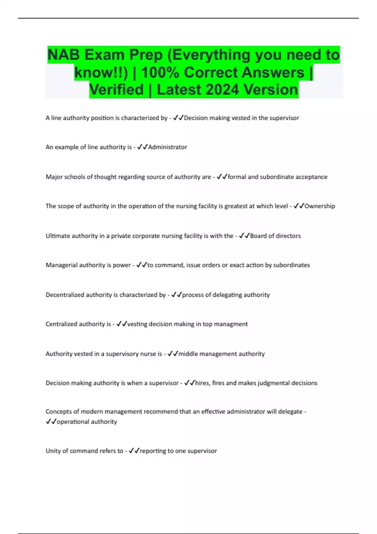 NAB Exam Prep (Everything you need to know!!) | 100% Correct Answers | Verified | Latest 2024 Version