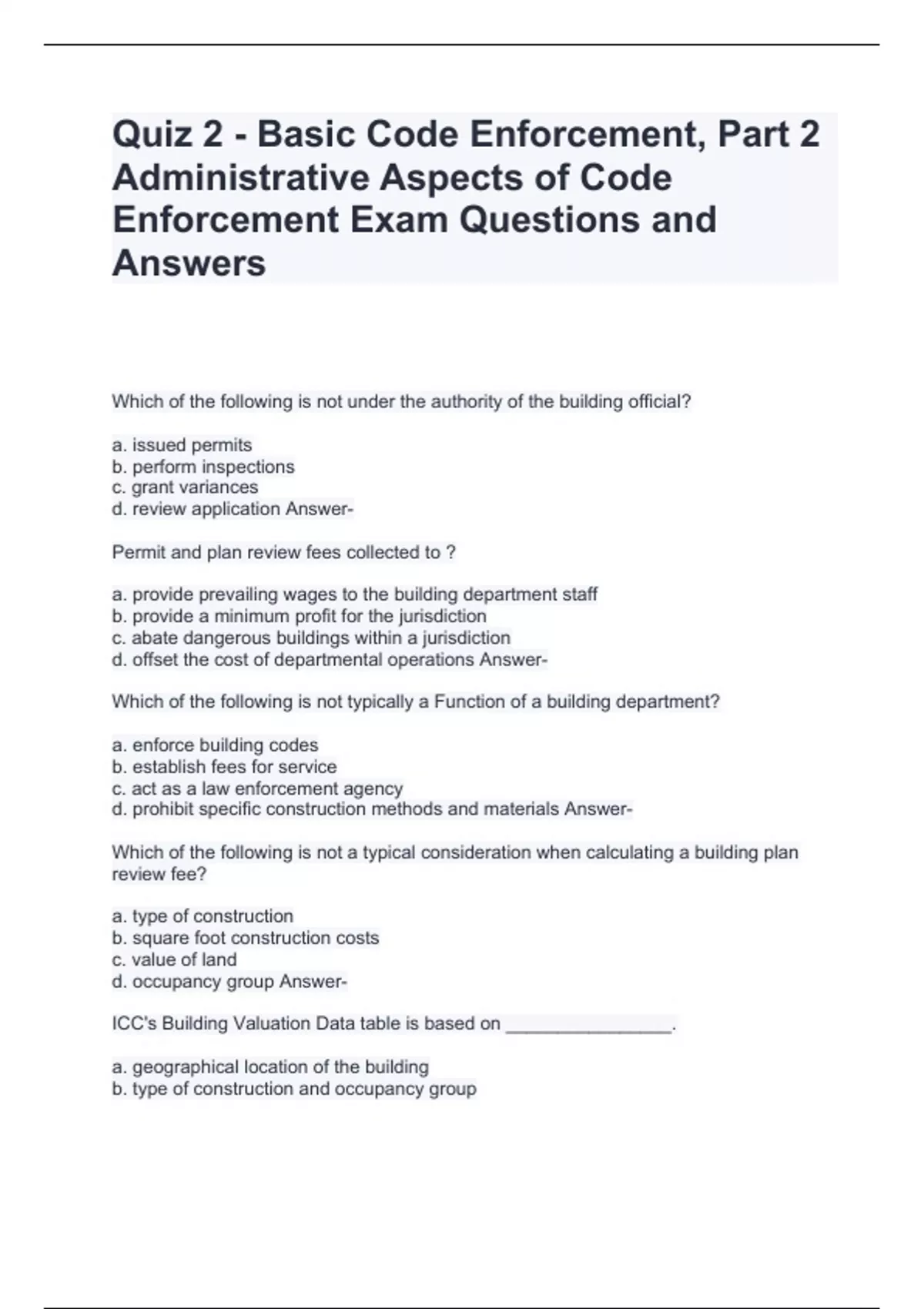Quiz 2 - Basic Code Enforcement, Part 2 Administrative Aspects of Code Enforcement Exam Questions and Answers.
