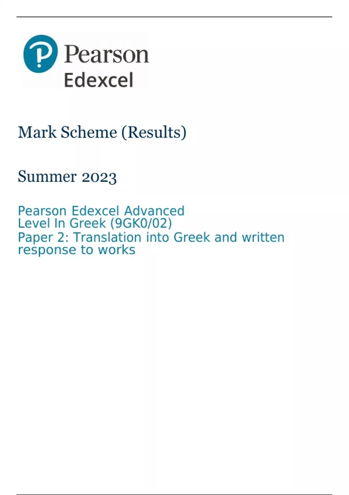 Edexcel a level greek paper 2 mark scheme june 2023