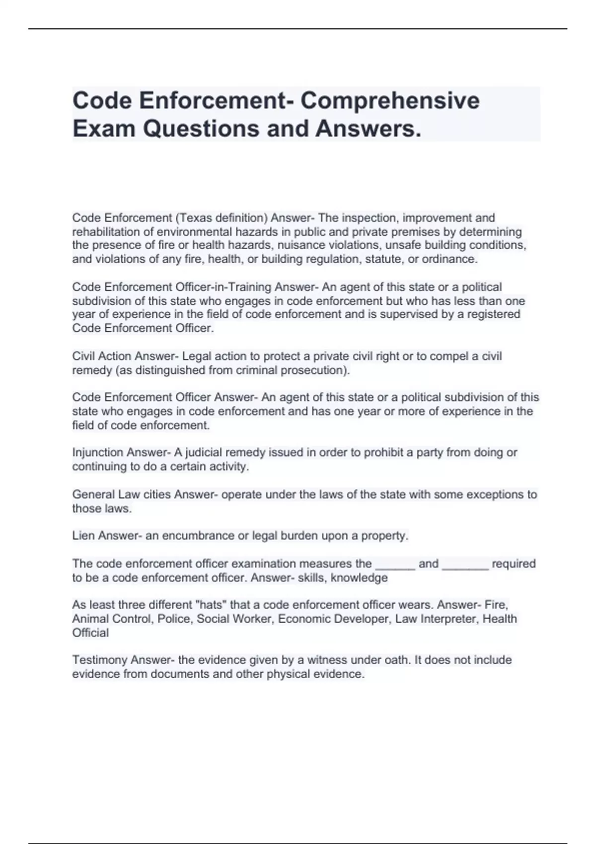 Code Enforcement- Comprehensive Exam Questions and Answers.