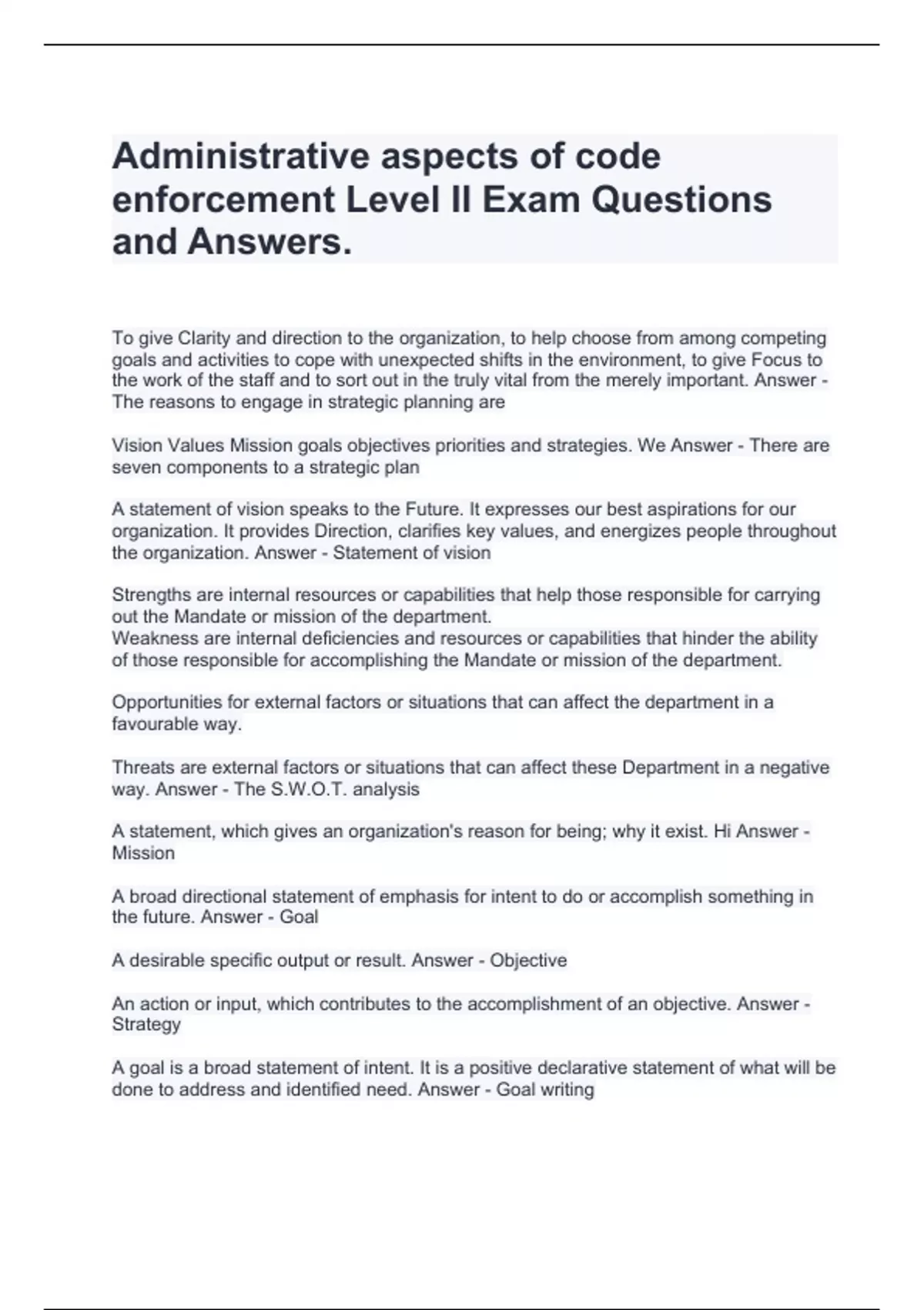 Administrative aspects of code enforcement Level II Exam Questions and Answers