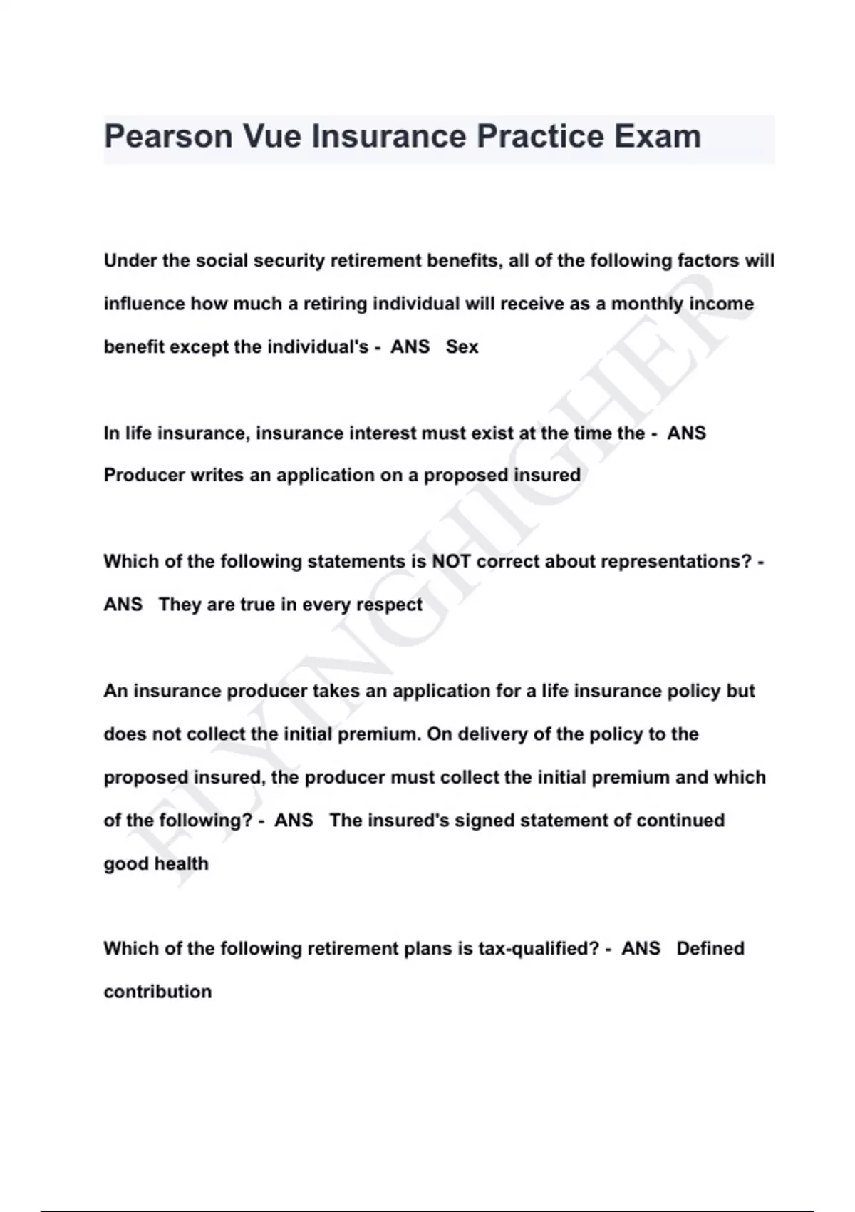 - Pearson Vue Insurance Practice