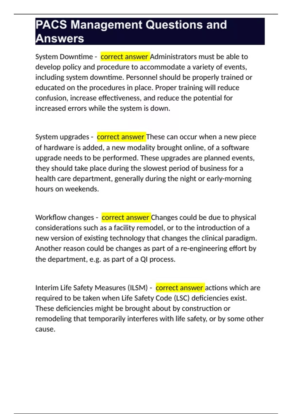 PACS Management Questions and Answers