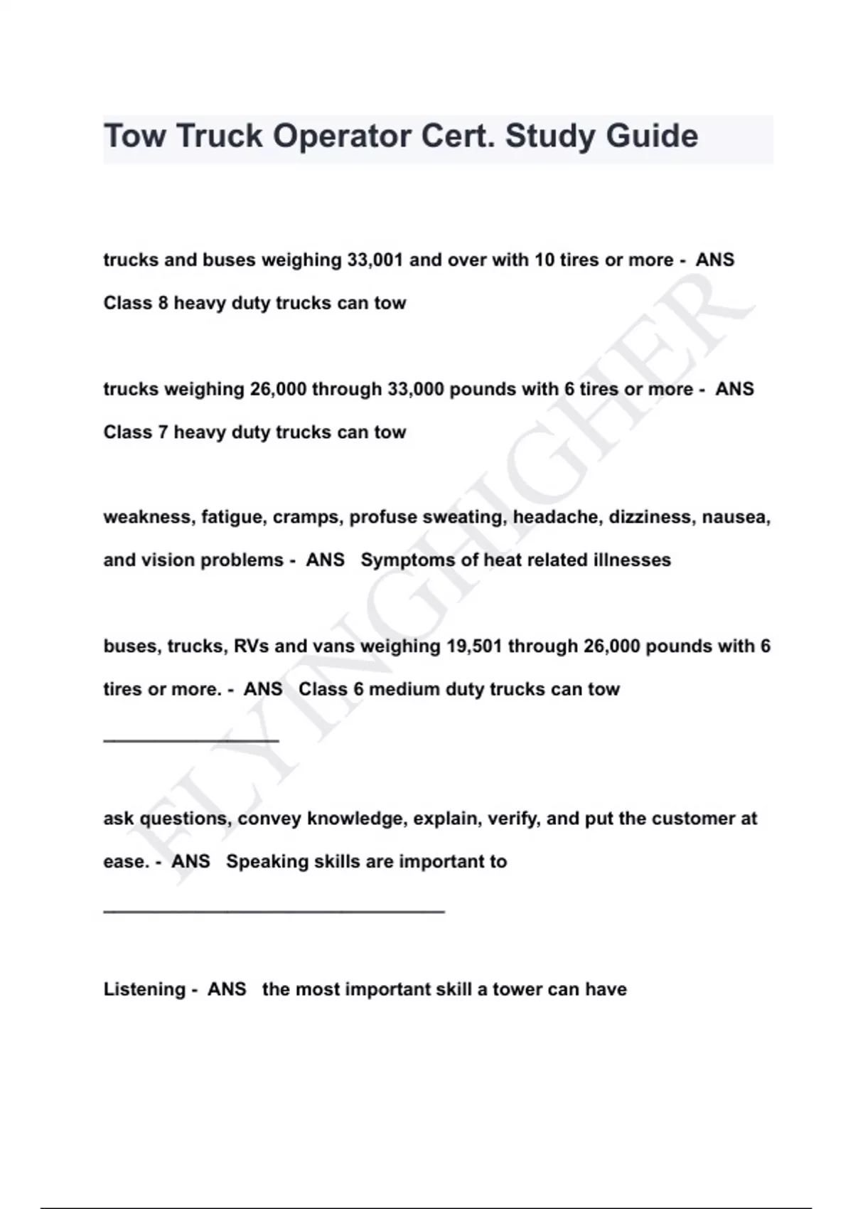 Tow Truck Operator Cert. Study Guide QUESTIONS & ANSWERS 2024 ( A+ GRADED 100% VERIFIED)