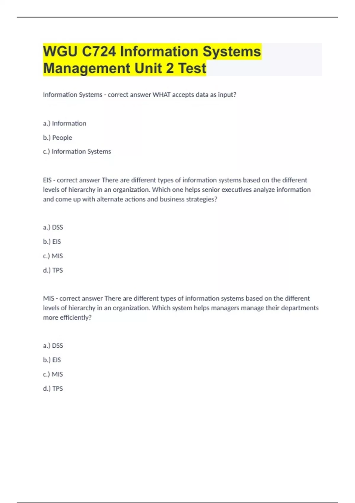 WGU C724 Information Systems Management Unit 2 Module 2 Quiz study guide (multiple choices and answers)