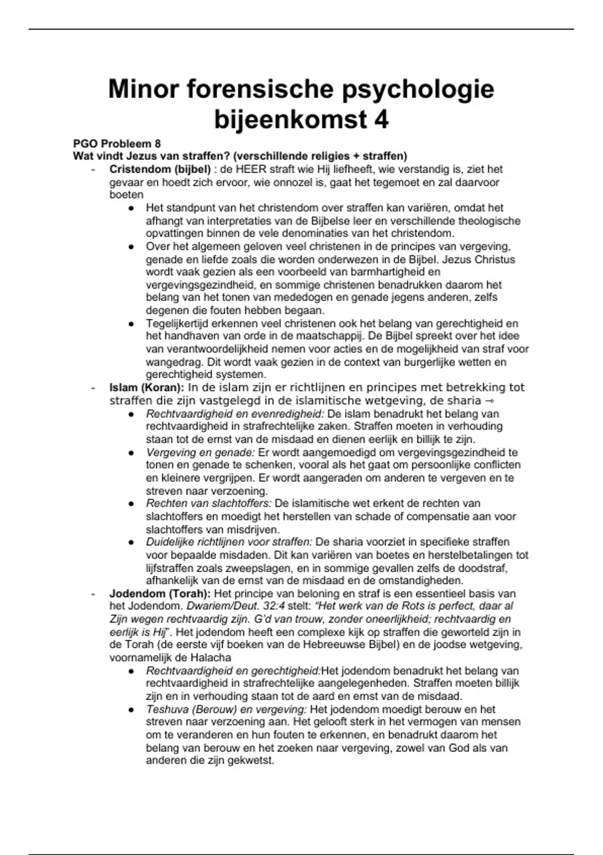 Dit document is een samenvatting van college 4 voor de minor Forensische Psychologie gegeven op HBO Drechtsteden/HBO Academy in 2023/2024