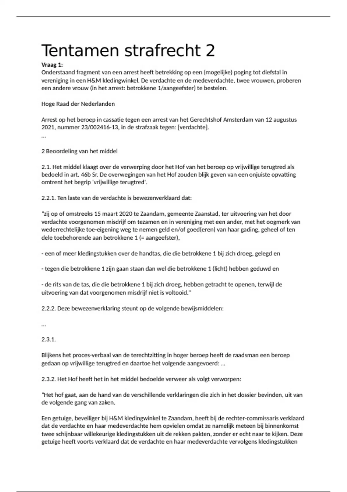 Tentamen strafrecht 2