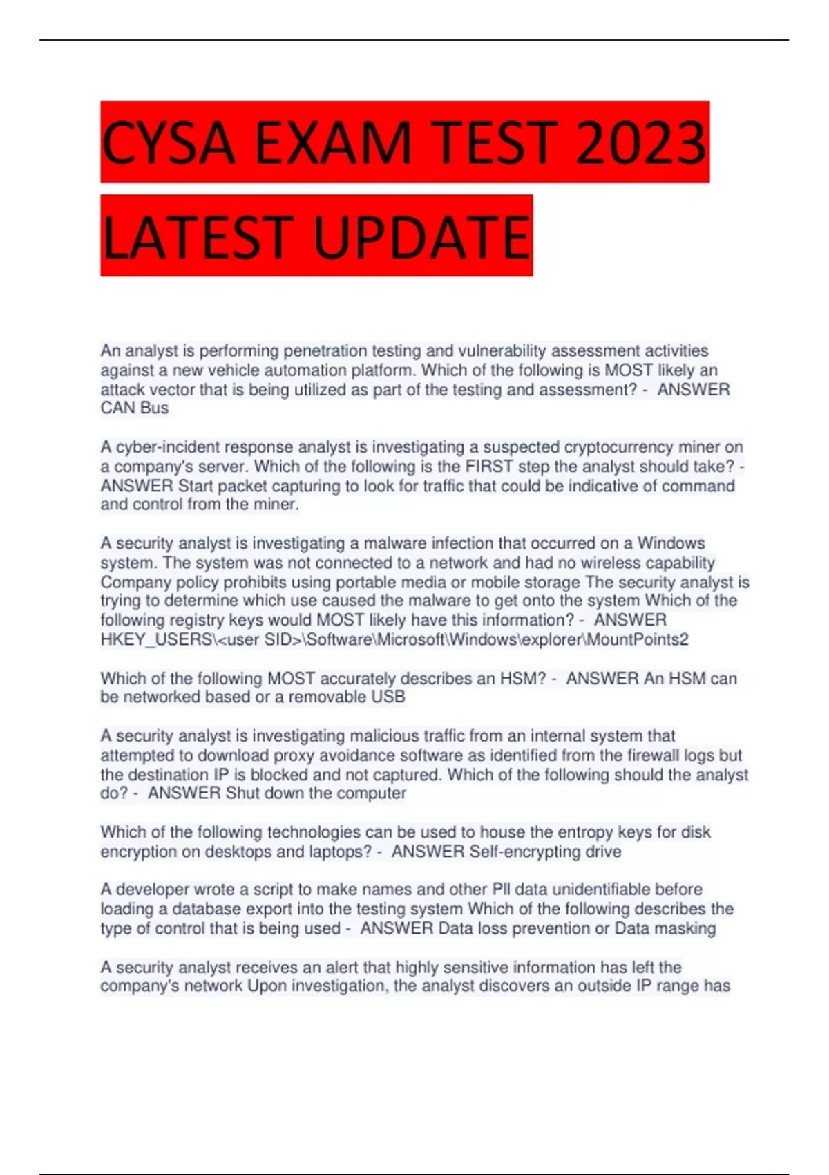 CYSA EXAM TEST 2023 LATEST UPDATE
