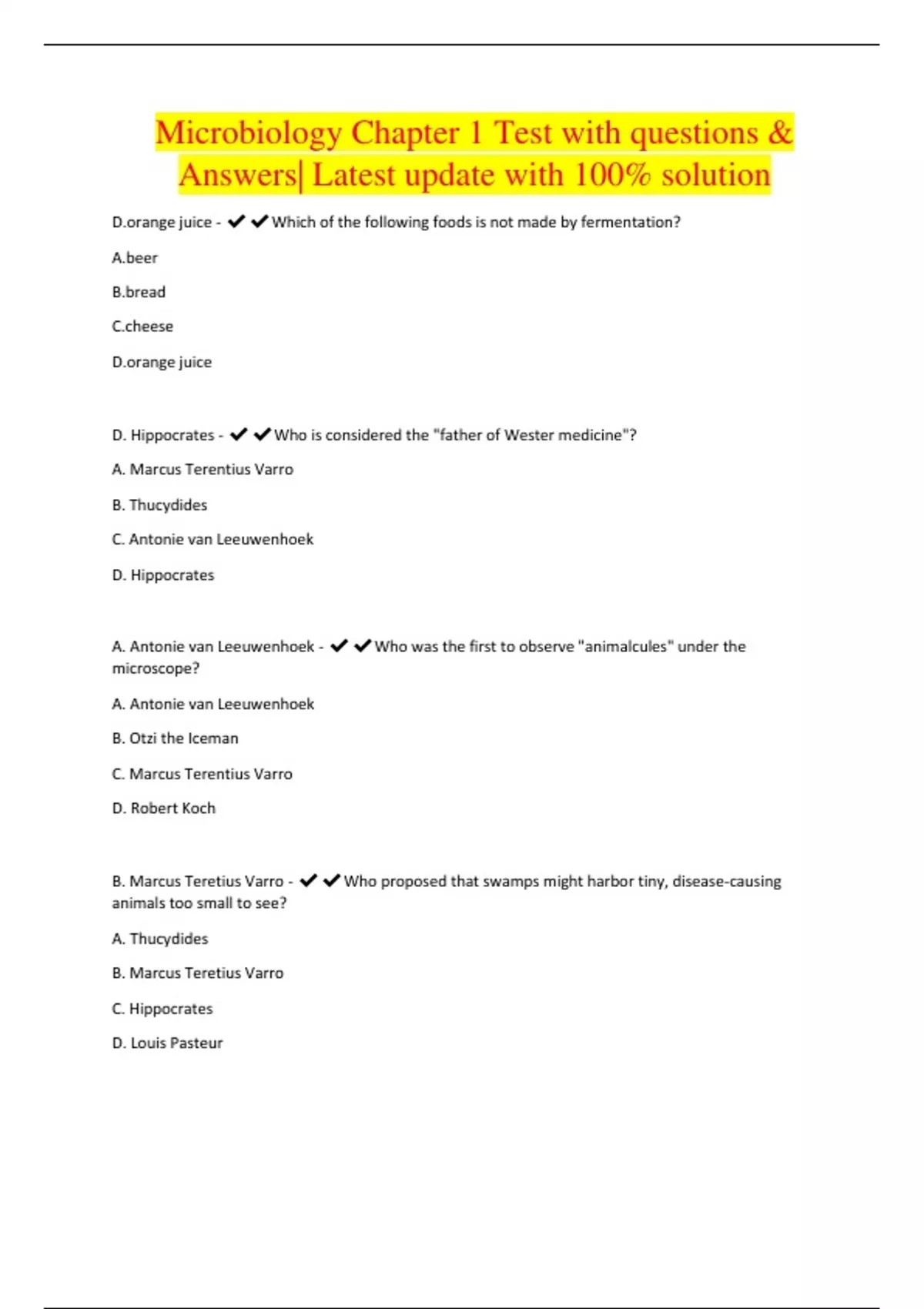 Microbiology Chapter 1 Test with questions & Answers| Latest update with 100% solution