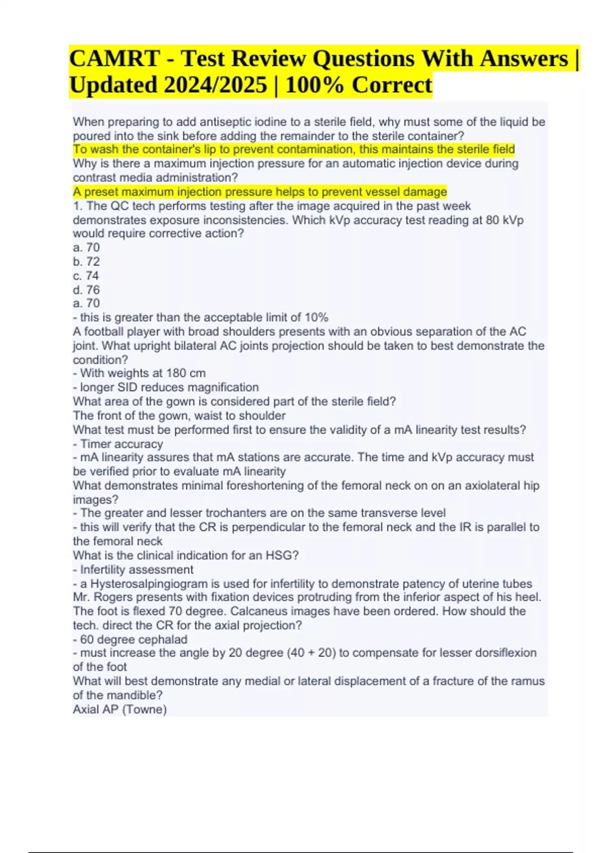 CAMRT Test Review Questions With Answers Updated 2024/2025 (100% Correct)