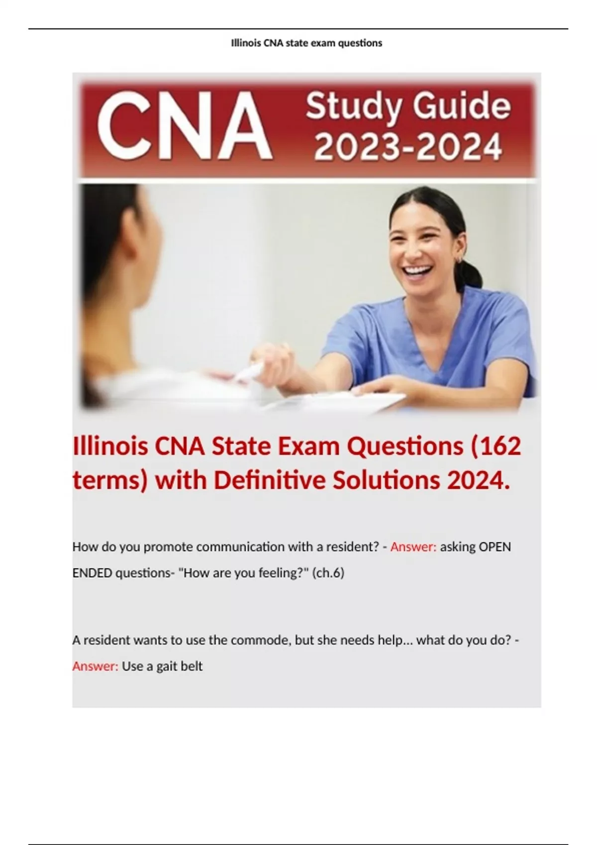 Illinois CNA State Exam Questions (162 terms) with Definitive Solutions 2024.