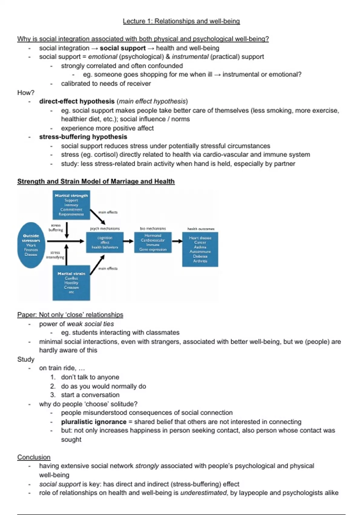 - social integration → social support → health and well-being