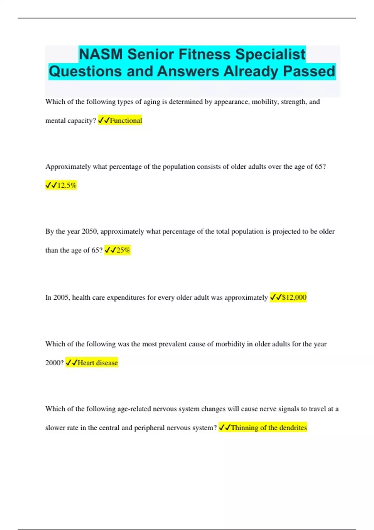 NASM Senior Fitness Specialist Questions and Answers Already Passed