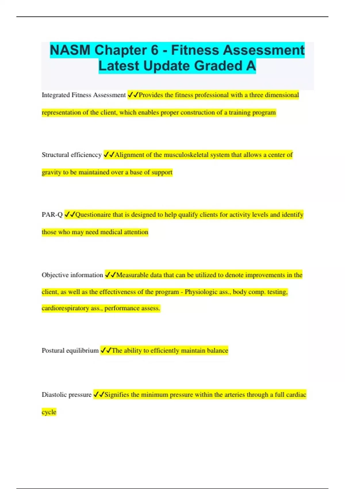 NASM Chapter 6 - Fitness Assessment Latest Update Graded A