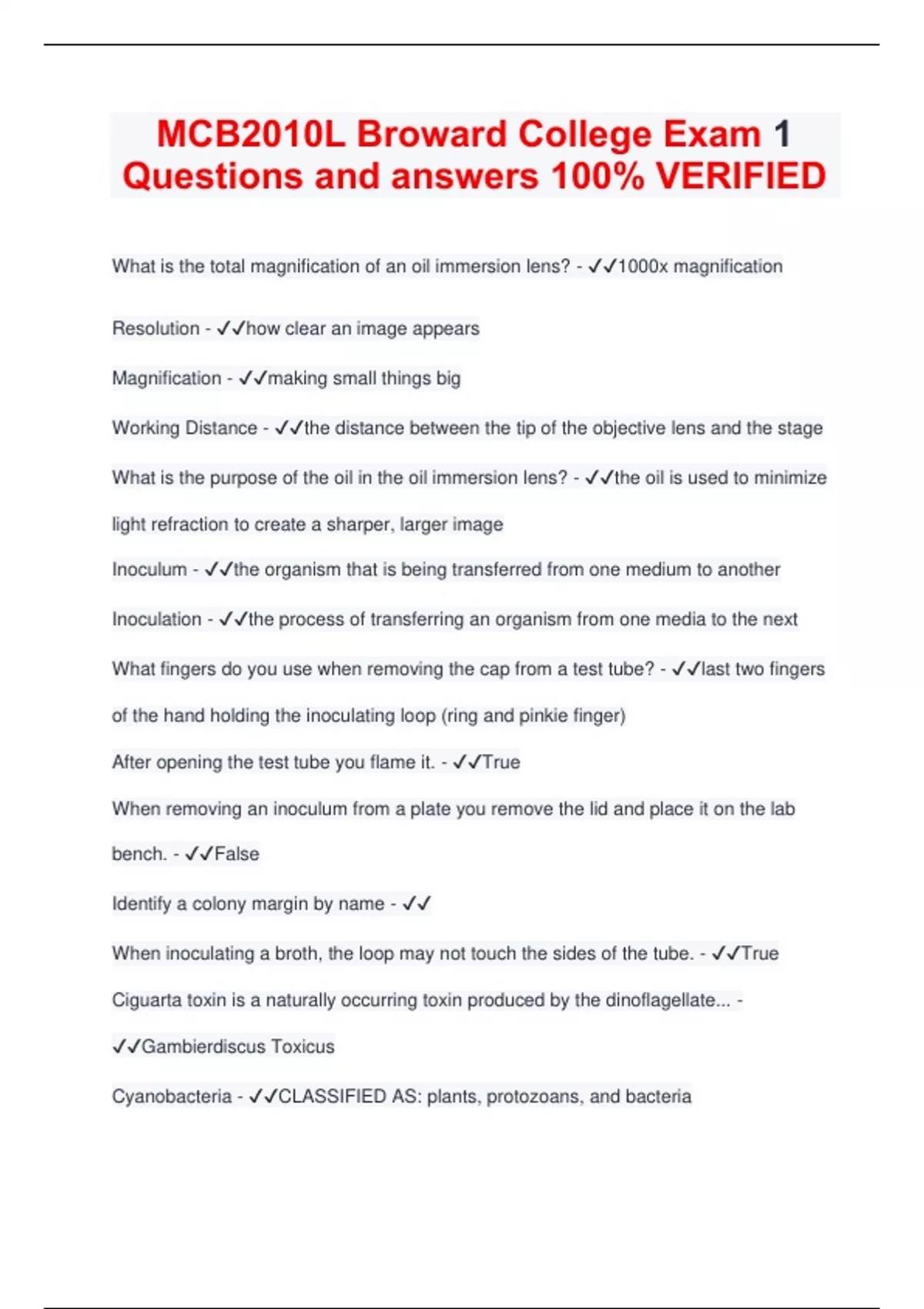 MCB2010L Broward College Exam 1 Questions and answers 100% VERIFIED