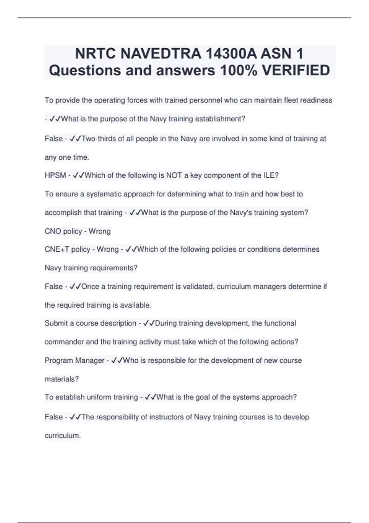 NRTC NAVEDTRA 14300A ASN 1 Questions and answers 100% VERIFIED