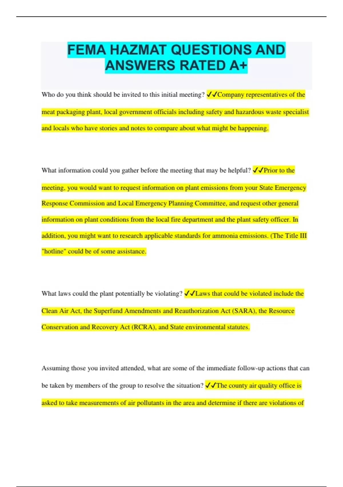 FEMA HAZMAT QUESTIONS AND ANSWERS RATED A+