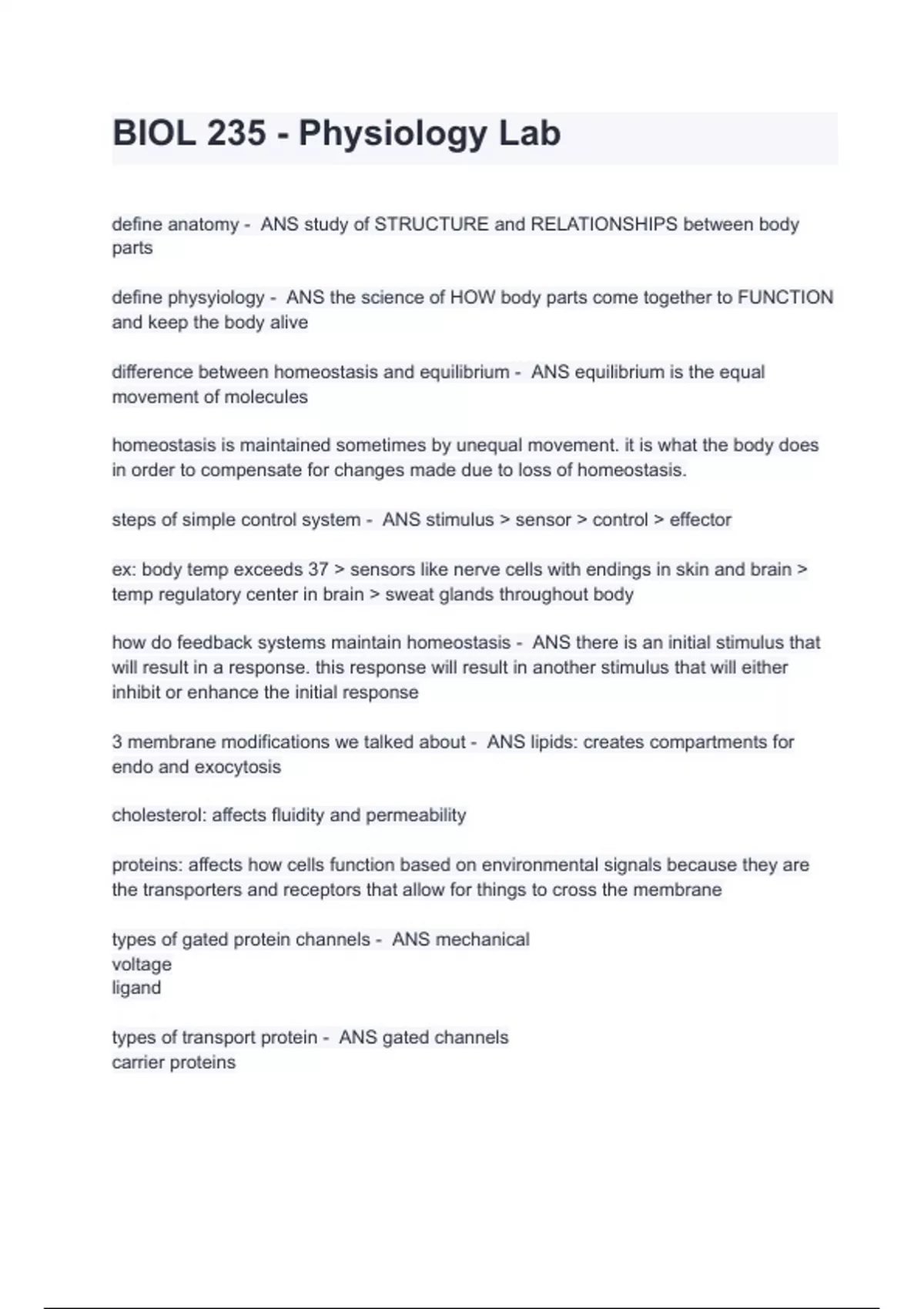 BIOL 235 - Physiology Lab QUESTIONS AND ANSWERS 100% VERIFIED