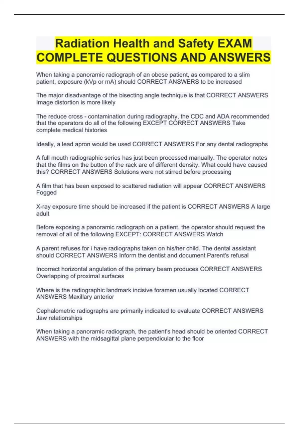 Radiation Health and Safety EXAM COMPLETE QUESTIONS AND ANSWERS
