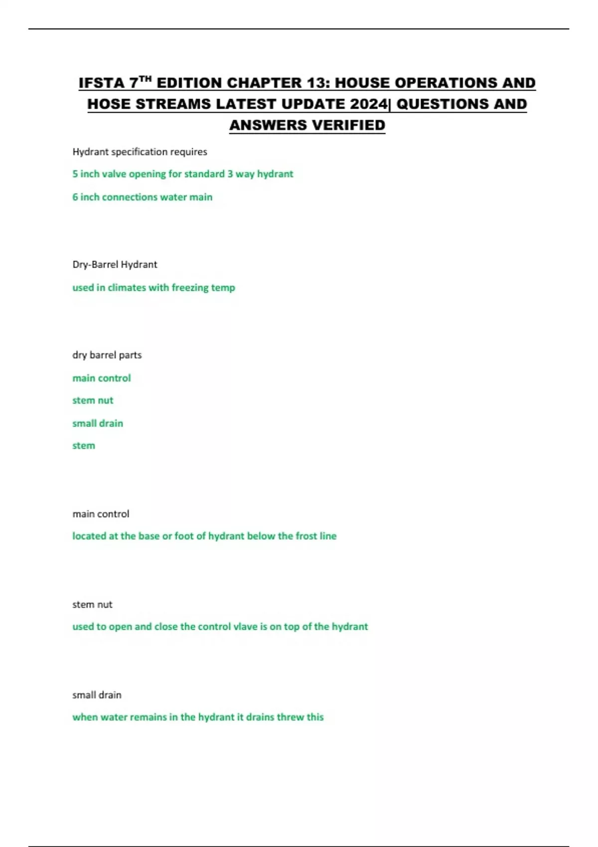 IFSTA 7TH EDITION CHAPTER 13: HOUSE OPERATIONS AND HOSE STREAMS LATEST UPDATE 2024| QUESTIONS AND ANSWERS VERIFIED