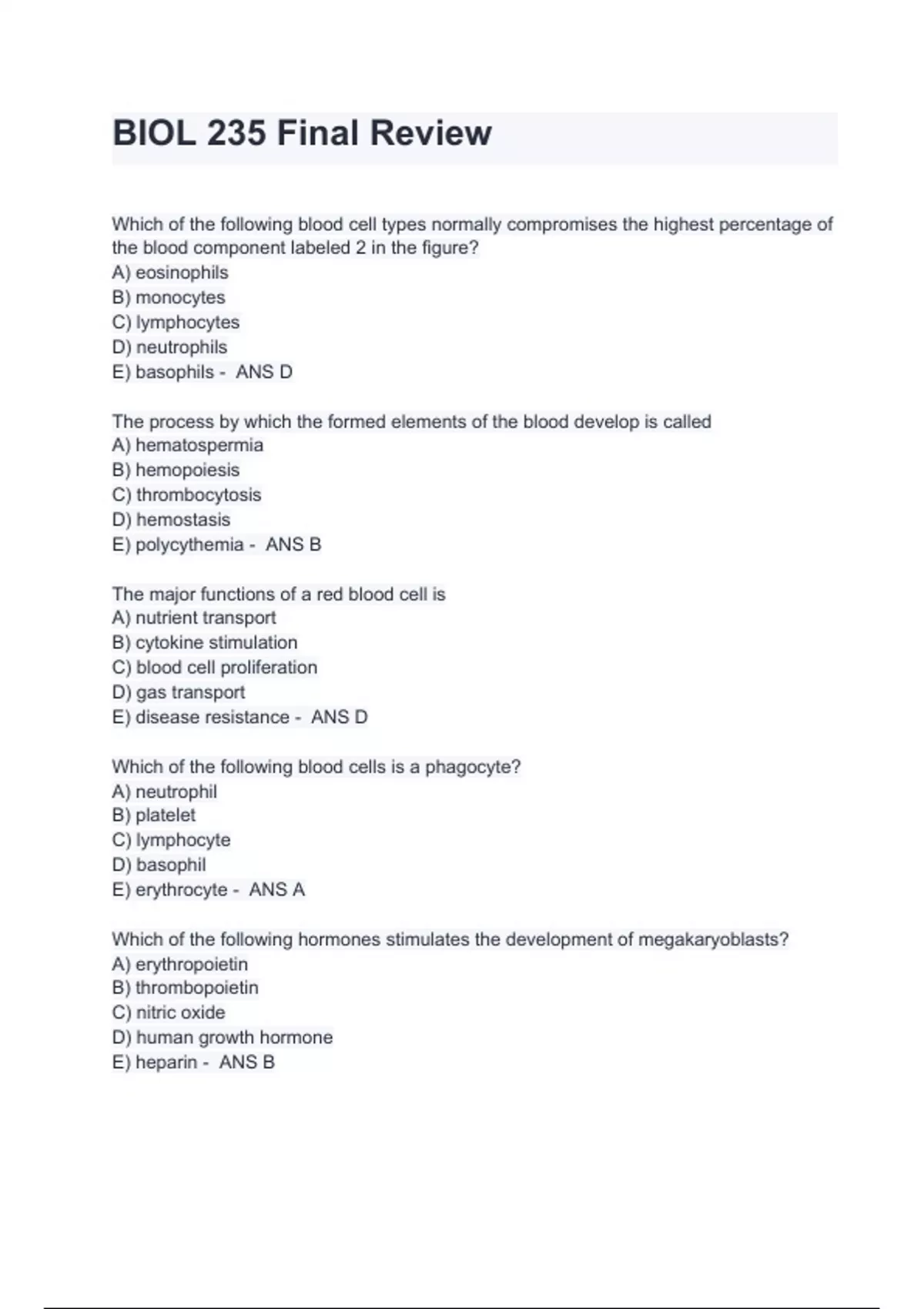 BIOL 235 Final Review Questions And Answers A GRADED 100%VERIFIED