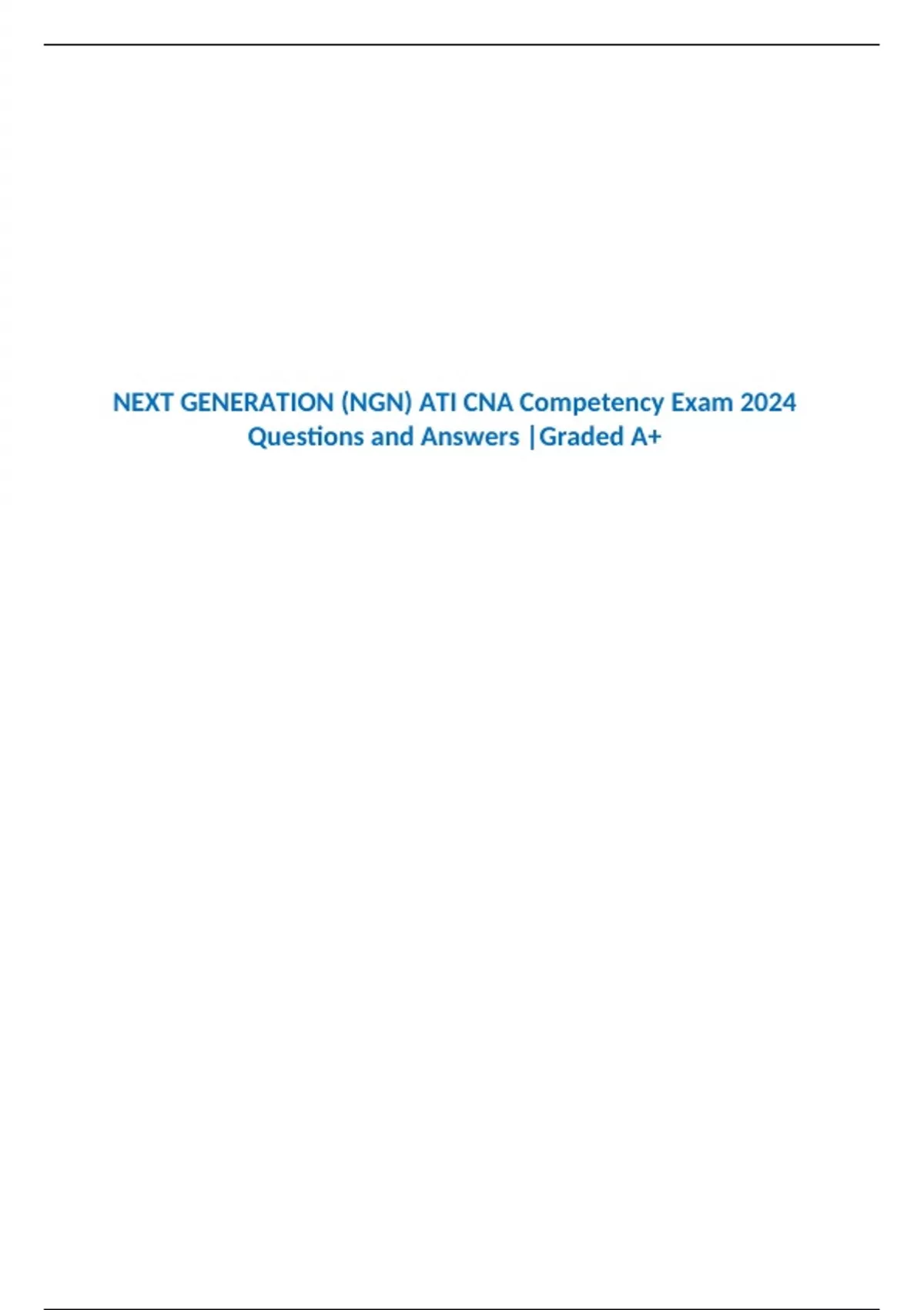 NEXT GENERATION (NGN) ATI CNA Competency Exam 2024 Questions and Answers |Graded A+