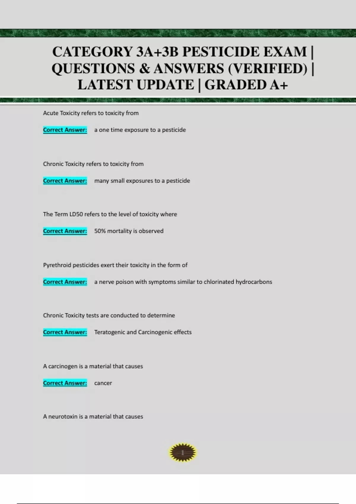 CATEGORY 3A+3B PESTICIDE EXAM | QUESTIONS & ANSWERS (VERIFIED) | LATEST UPDATE | GRADED A+CATEGORY 3A+3B PESTICIDE EXAM | QUESTIONS & ANSWERS (VERIFIED) | LATEST UPDATE | GRADED A+