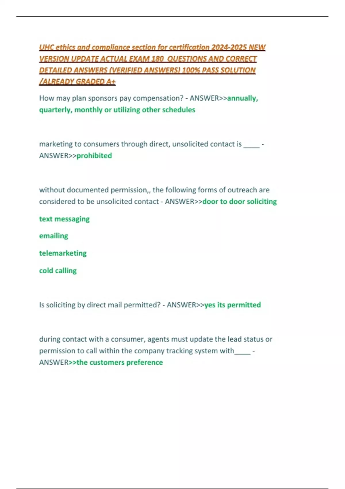 UHC ethics and compliance section for certification NEW VERSION UPDATE ACTUAL EXAM 180 QUESTIONS AND CORRECT DETAILED ANSWERS (VERIFIED ANSWERS) 100% PASS SOLUTION /ALREADY GRADED A+
