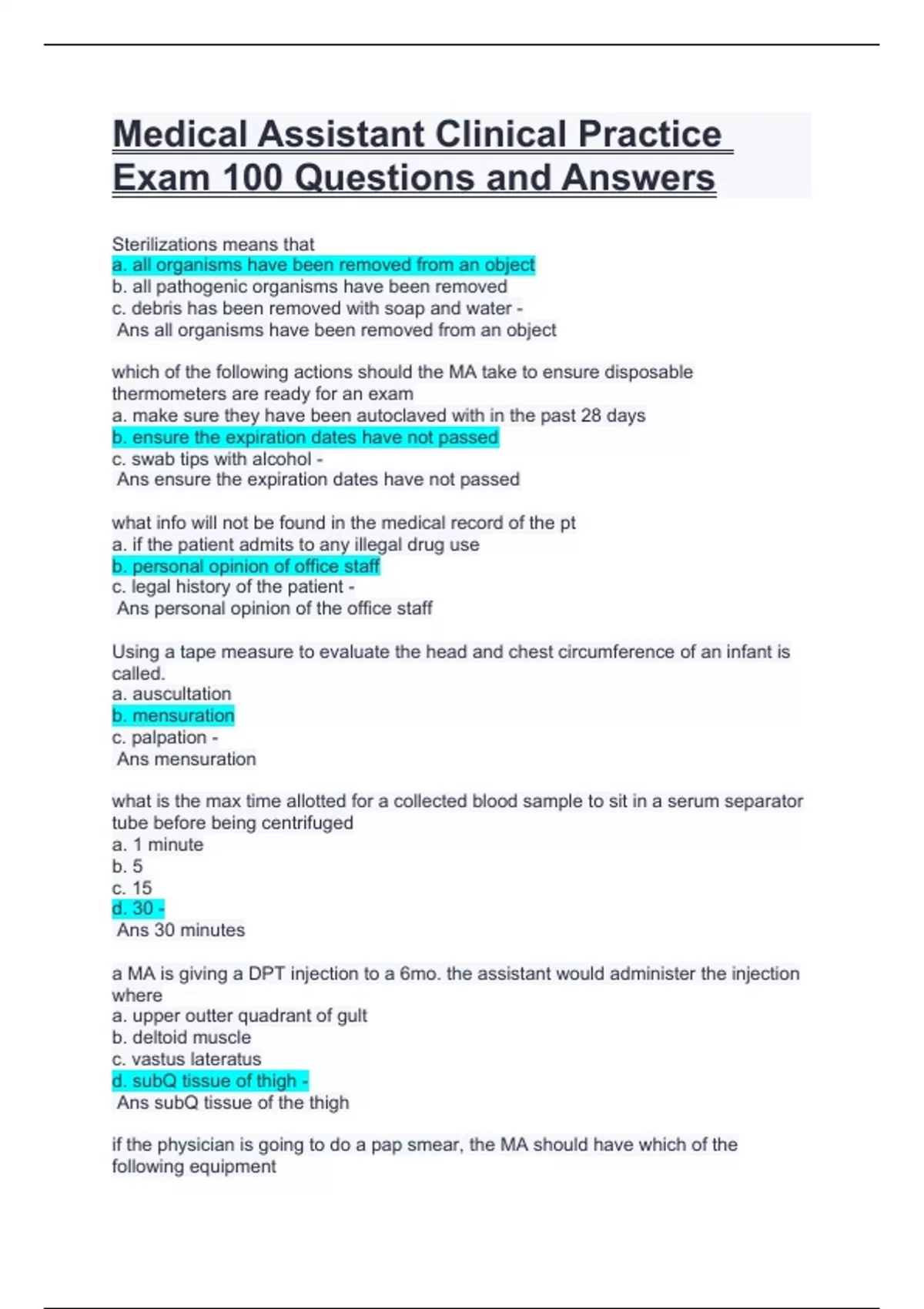 Medical Assistant Clinical Practice Exam 100 Questions and Answers.