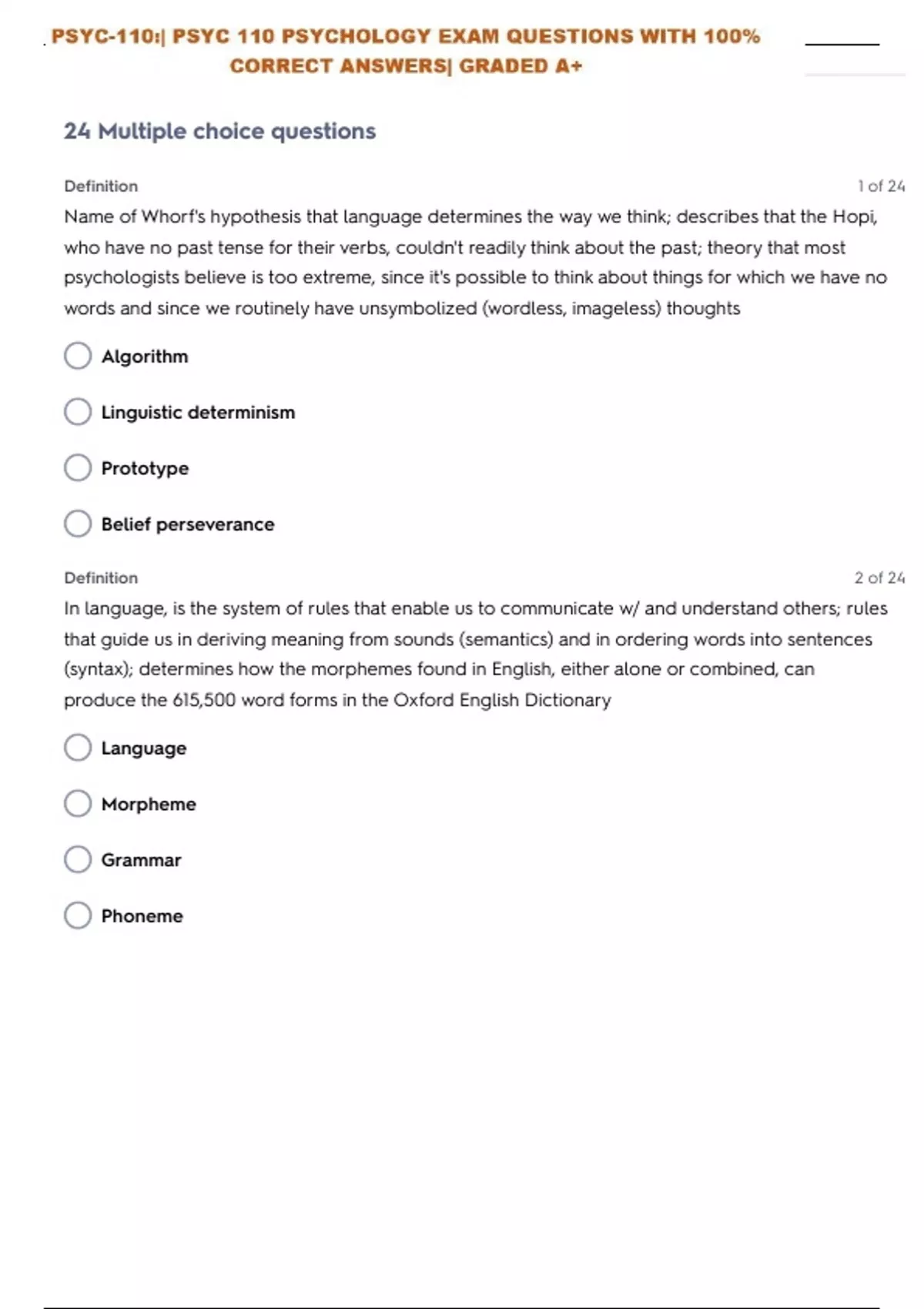 PSYC-110:| PSYC 110 PSYCHOLOGY THINKING & LANGUAGE EXAM QUESTIONS WITH CORRECT ANSWERS