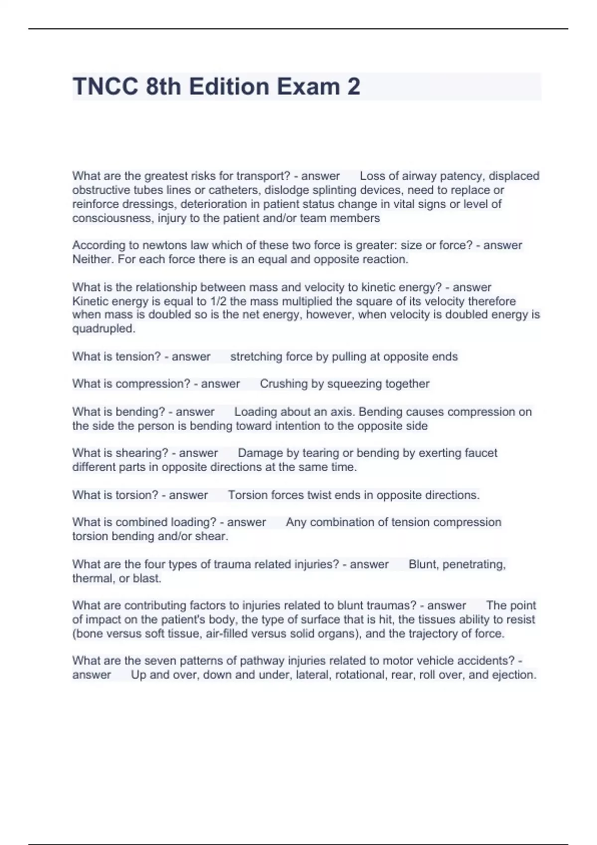 TNCC 8th Edition Exam 2 Questions with correct Answers 2024