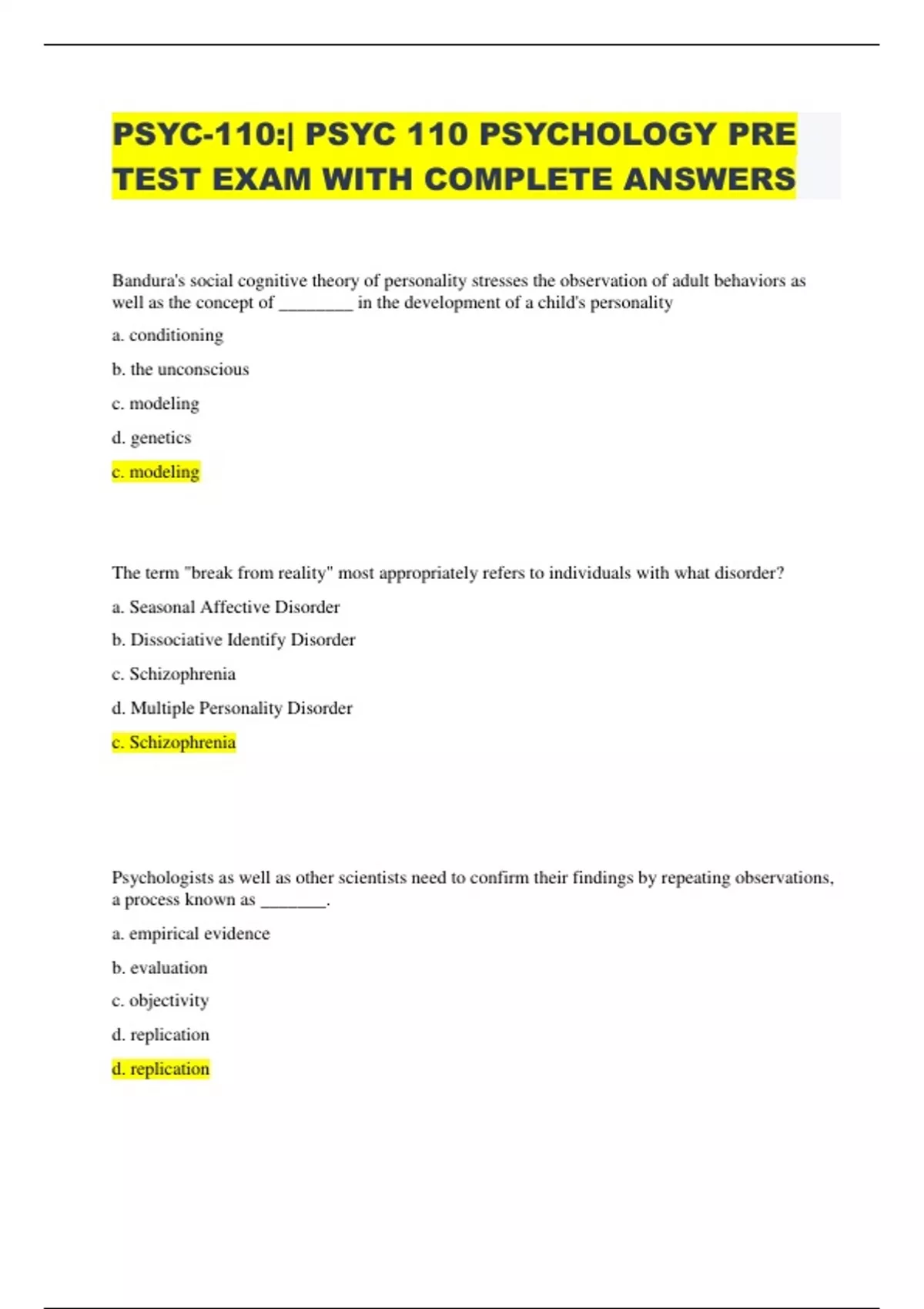PSYC-110:| PSYC 110 PSYCHOLOGY PRE TEST EXAM WITH COMPLETE ANSWERS