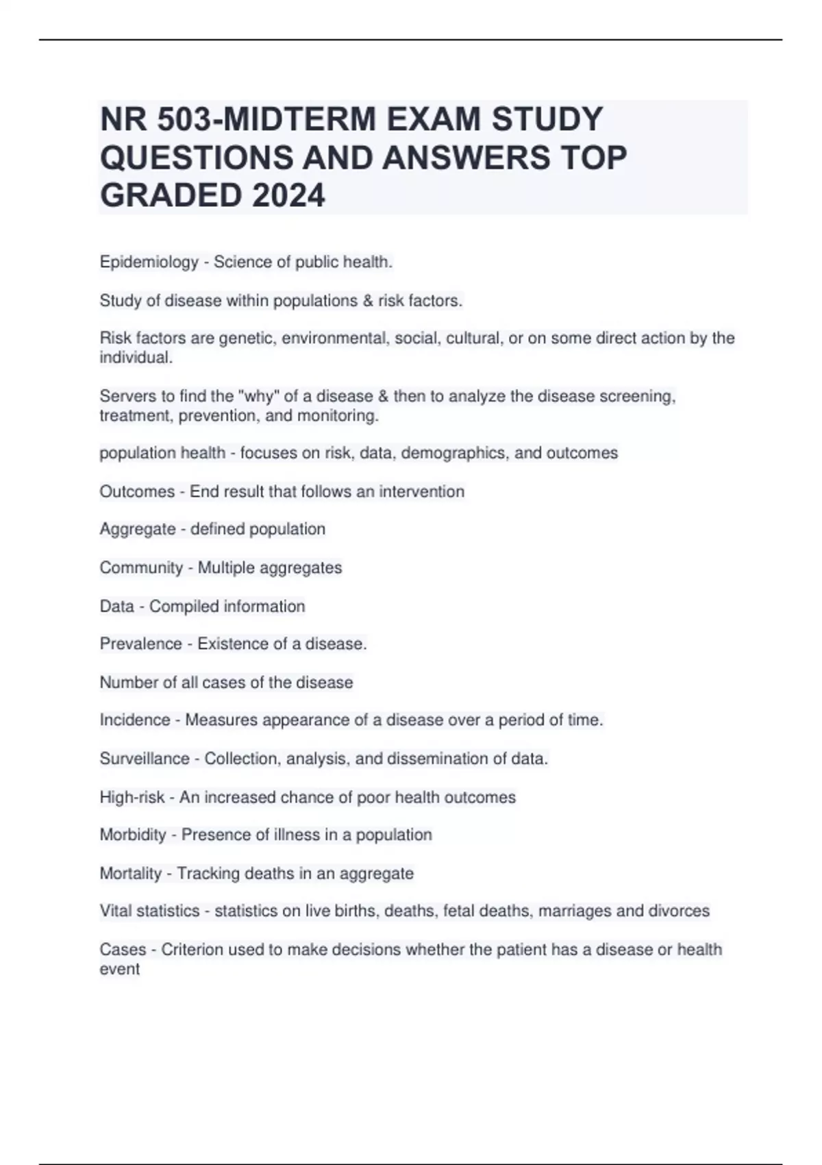 NR 503-MIDTERM EXAM STUDY QUESTIONS AND ANSWERS TOP GRADED 2024