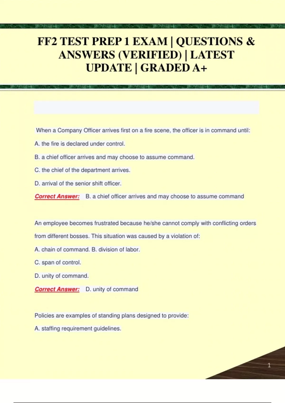 FF2 TEST PREP 1 EXAM | QUESTIONS & ANSWERS (VERIFIED) | LATEST UPDATE | GRADED A+FF2 TEST PREP 1 EXAM | QUESTIONS & ANSWERS (VERIFIED) | LATEST UPDATE | GRADED A+