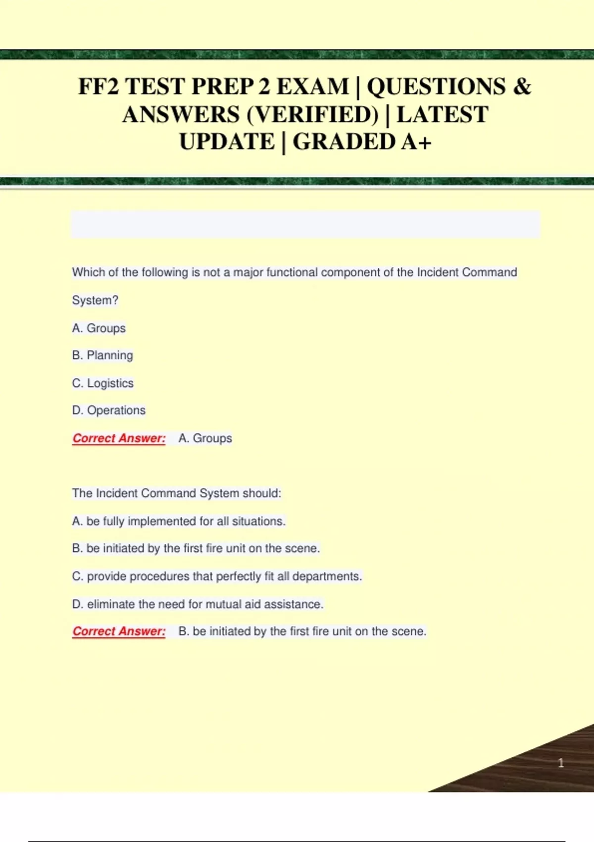 FF2 TEST PREP 2 EXAM | QUESTIONS & ANSWERS (VERIFIED) | LATEST UPDATE | GRADED A+FF2 TEST PREP 2 EXAM | QUESTIONS & ANSWERS (VERIFIED) | LATEST UPDATE | GRADED A+