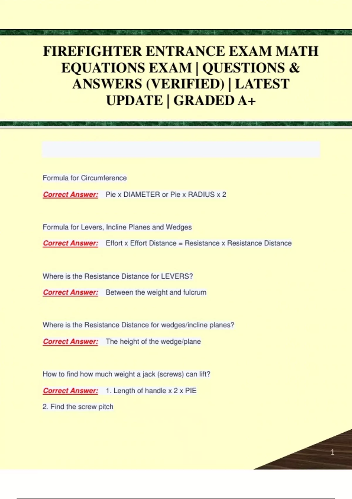FIREFIGHTER ENTRANCE EXAM MATH EQUATIONS EXAM | QUESTIONS & ANSWERS (VERIFIED) | LATEST UPDATE | GRADED A+FIREFIGHTER ENTRANCE EXAM MATH EQUATIONS EXAM | QUESTIONS & ANSWERS (VERIFIED) | LATEST UPDATE | GRADED A+