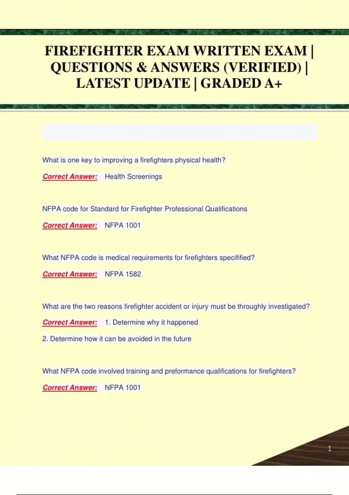 FIREFIGHTER EXAM WRITTEN EXAM | QUESTIONS & ANSWERS (VERIFIED) | LATEST UPDATE | GRADED A+FIREFIGHTER EXAM WRITTEN EXAM | QUESTIONS & ANSWERS (VERIFIED) | LATEST UPDATE | GRADED A+