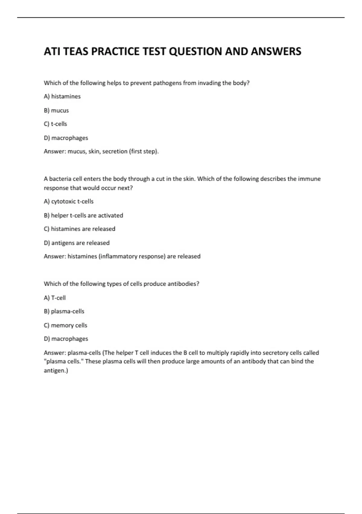 ATI TEAS PRACTICE TEST QUESTION AND ANSWERS