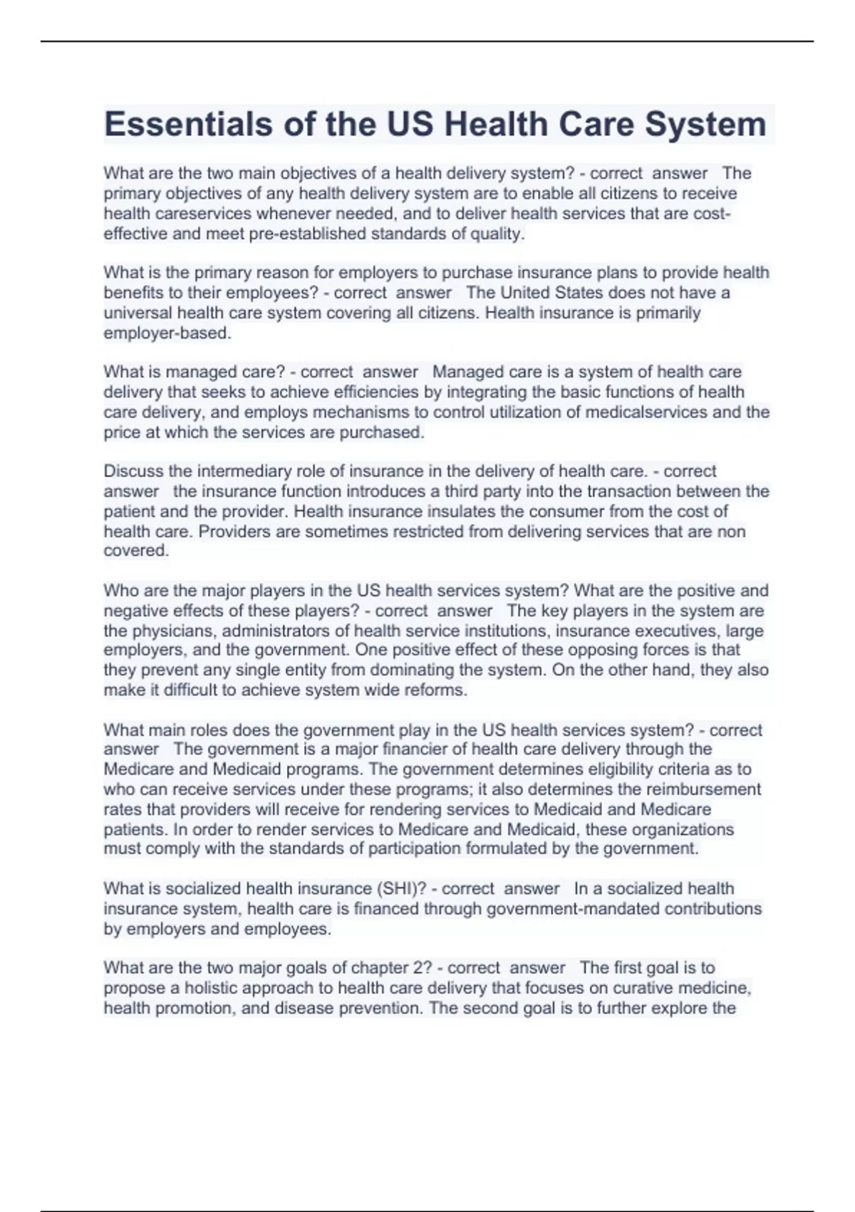 Essentials of the US Health Care System questions and answers 100% correct 2024
