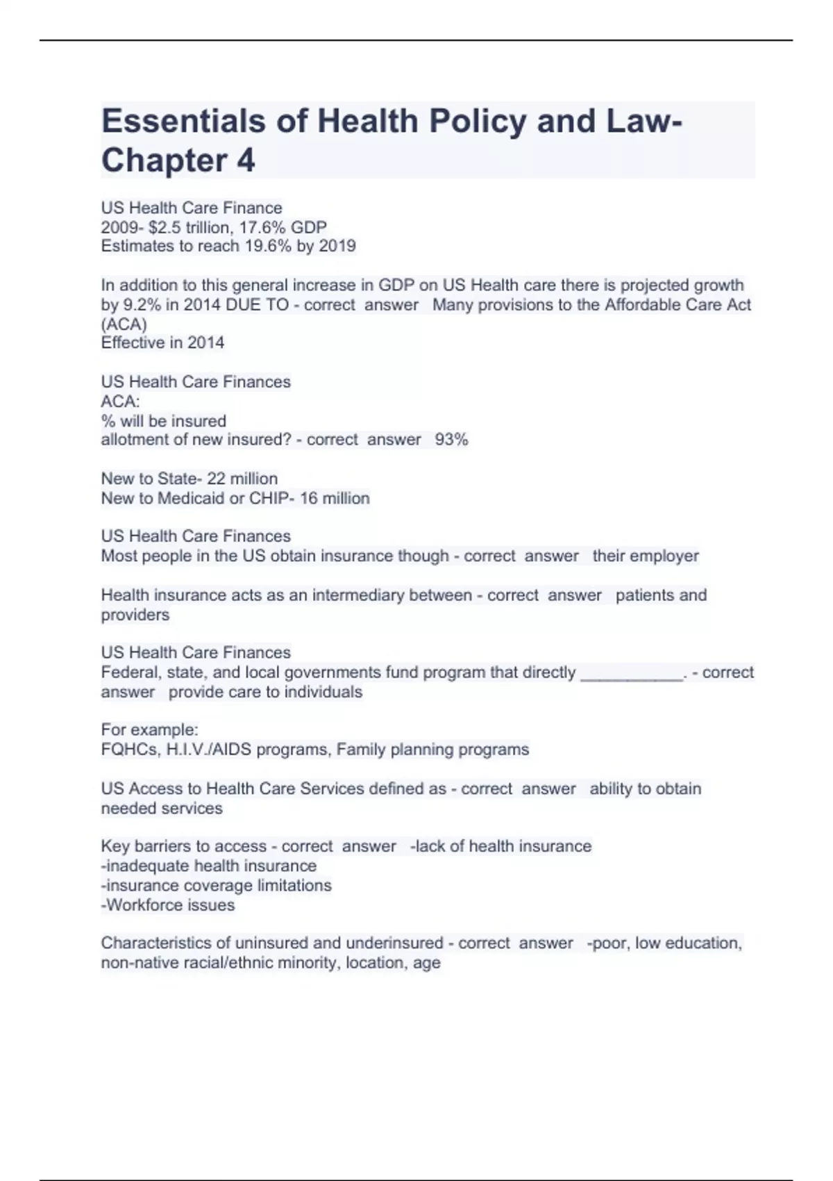 Essentials of Health Policy and Law questions and answers verified to pass 2024