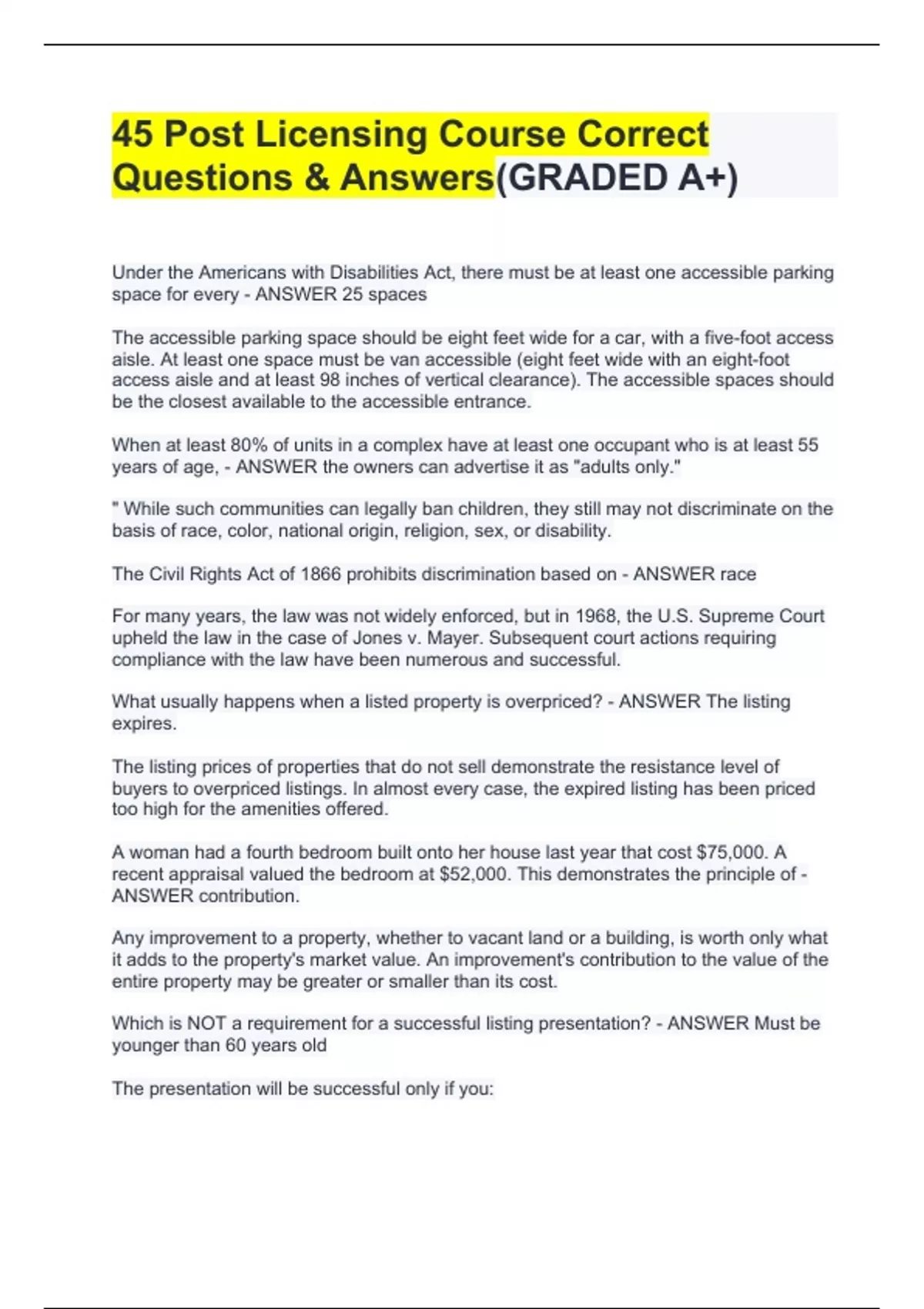 45 Post Licensing Course Correct Questions & Answers(GRADED A+)