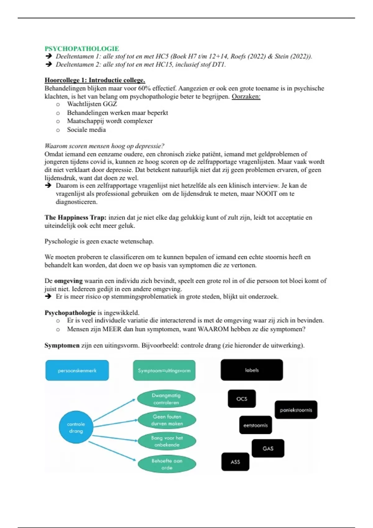 Deeltentamen 1: alle stof tot en met HC5 (Boek H7 t/m 12+14, Roefs (2022) & Stein (2022)).