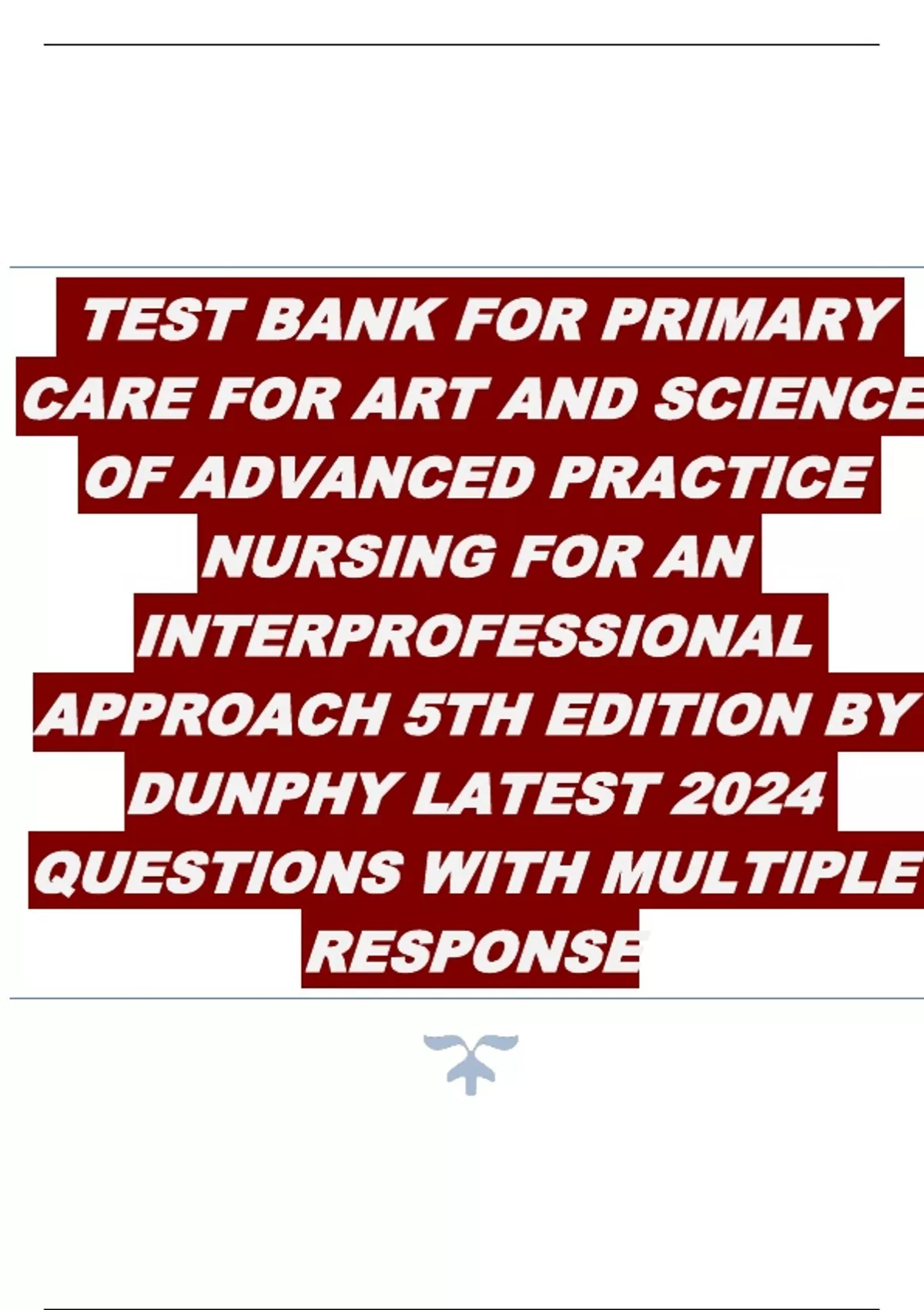 TEST BANK FOR PRIMARY CARE FOR ART AND SCIENCE OF ADVANCED PRACTICE NURSING FOR AN INTERPROFESSIONAL APPROACH 5TH EDITION BY DUNPHY LATEST 2024 QUESTIONS WITH MULTIPLE RESPONSE